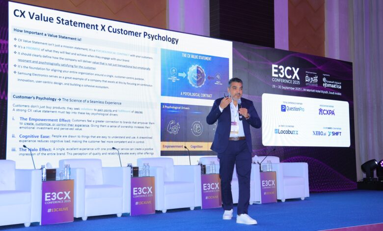 شارك ثلاث مصريين كمتحدثين رئيسين في فعاليات مؤتمر E3CX الذي عقد في العاصمة السعودية الرياض خلال الفترة من 29 إلي 30 سبتمبر الجاري تحت رعاية الأكاديمية الوطنية لتجربة العملاء بالمملكة .