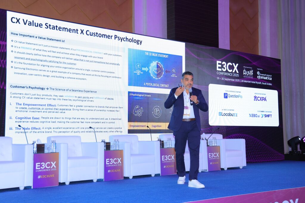 شارك ثلاث مصريين كمتحدثين رئيسين في فعاليات مؤتمر E3CX الذي عقد في العاصمة السعودية الرياض خلال الفترة من 29 إلي 30 سبتمبر الجاري تحت رعاية الأكاديمية الوطنية لتجربة العملاء بالمملكة .