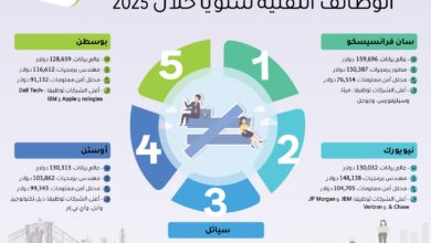 أعلى 5 مدن أمريكية فى رواتب الوظائف التقنية سنوياً خلال 2025