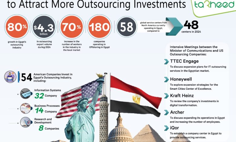 This includes 58 global service centers from North America, compared to just 48 centers in 2024, reflecting the increasing confidence of major international companies in Egypt’s infrastructure and workforce.