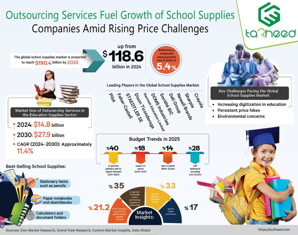 According to a report published by Grand View Research, the school supplies market is likely to reach $190.4 billion by 2033, compared to $118.6 billion last year, a 5.4% annual increase.