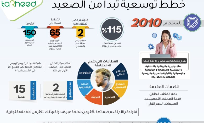 وحققت شركة “فاوندفر” مصر حققت نموًا بنسبة 115% مقارنة بعام 2023، مما يعكس جاذبية مصر كوجهة متميزة لخدمات تجربة العملاء.