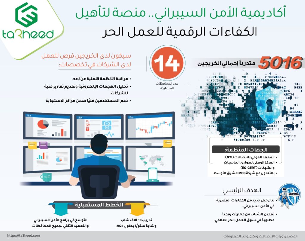 في خطوة تعكس رؤية الدولة المصرية نحو بناء اقتصاد رقمي متكامل قائم على المعرفة والمهارات، تواصل أكاديمية الأمن السيبراني للنشء والشباب أداء دورها الريادي في إعداد وتأهيل جيل جديد من الكفاءات المصرية القادرة على المنافسة في سوق العمل المحلي والعالمي، خاصة في مجالات الأمن السيبراني والعمل الحر والتعهيد الرقمي.